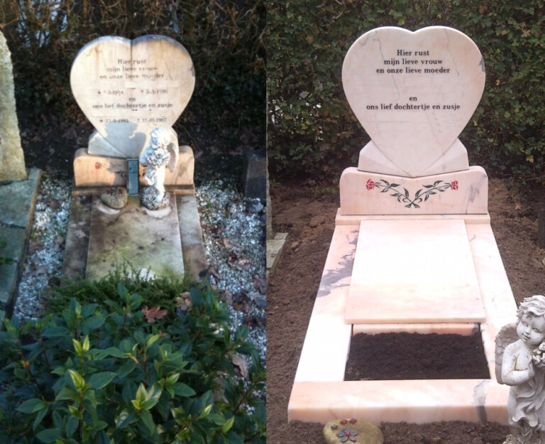 Onderhoud of restauratie van een grafsteen is soms noodzakelijk als een grafmonument al enige tijd op de begraafplaats staat. Doordat de grafsteen jarenlang in weer en wind buiten staat, kan de steen er verweerd uit gaan zien. Daarnaast kan het zijn dat de tekst na verloop van tijd vervaagd, of dat de steen beschadigt. In de meeste gevallen kunnen we de grafsteen opknappen, waardoor de steen er weer als nieuw uitziet. Voor een kleine opknapbeurt kunt u vaak ook zelf de grafsteen schoonmaken.
